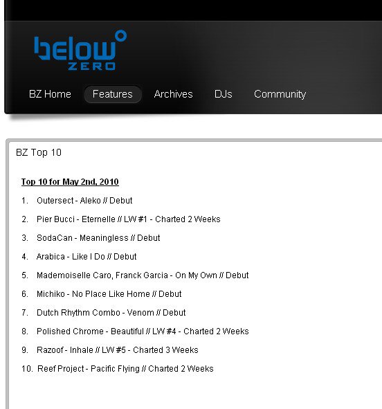 debuts at #1 on Below Zero's May 2, 2010 chart